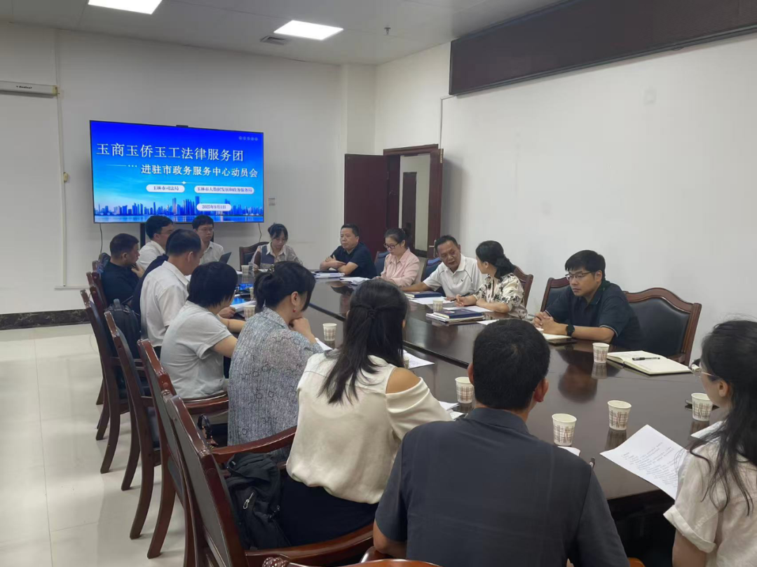2025年7月28日,玉林市司法局印发了《玉林市司法局关于成立玉商玉侨玉工法律服务团的通知》,推行“玉事不求人”改革,率先在全区建立起以专业法律服务团进驻市政务服务中心的服务模式。2025年9月1日,玉林市司法局、玉林市大数据局联合召开玉商玉侨玉工法律服务团进驻动员会,标志着这个全新的、旨在服务玉林市经济社会高质量发展的法律支持平台正式启动运行。
