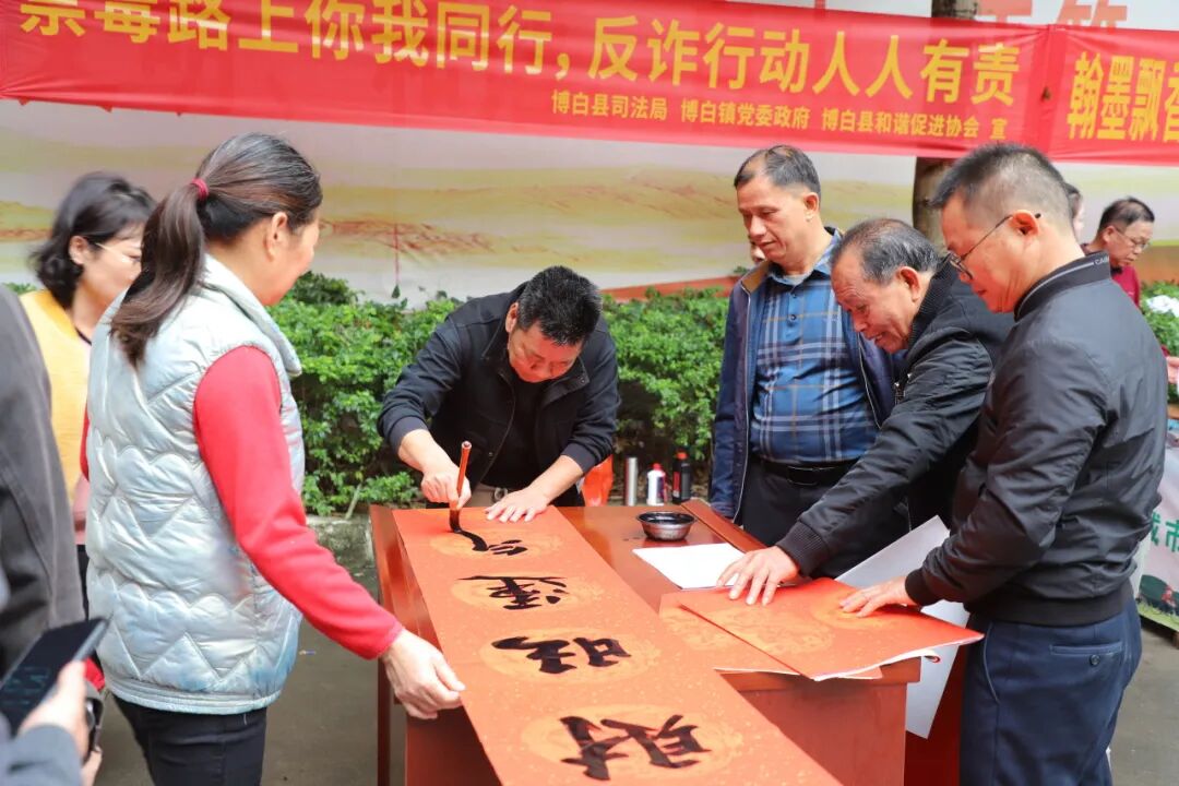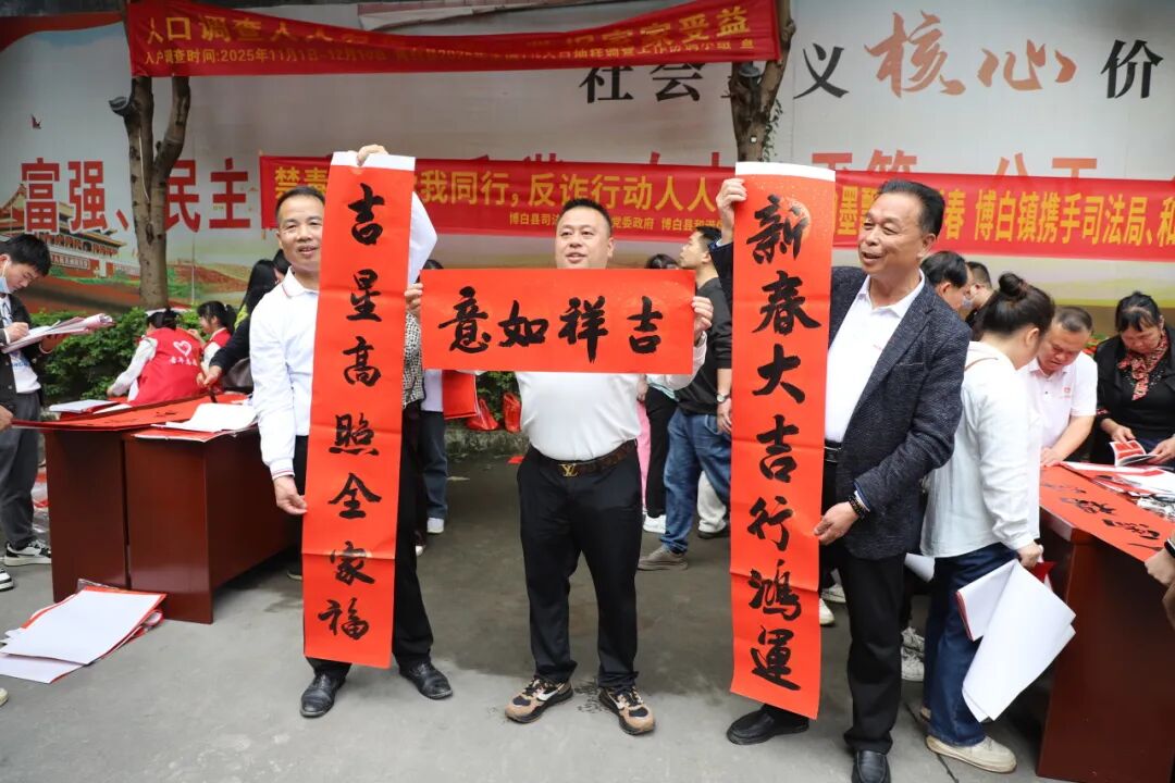 为弘扬中华优秀传统文化,营造喜庆祥和的马年新春氛围,近日,玉林市博白县司法局携手博白镇人民政府、博白县和谐促进协会,在镇政府门口开展“送福到万家”义写春联活动,将法治理念、马年祥瑞与新春祝福融为一体,为群众送上兼具文化味与法治味的暖心“年货”。