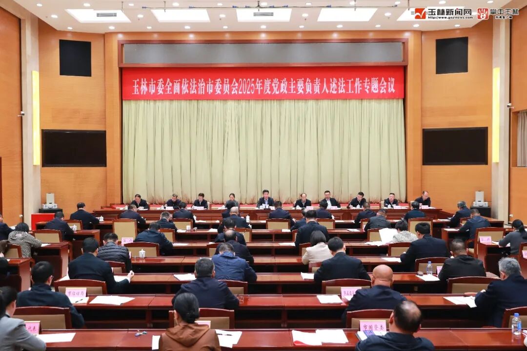 3月3日,玉林市委全面依法治市委员会2025年度党政主要负责人述法工作专题会议召开。市委书记、市委全面依法治市委员会主任王琛主持并作点评讲话。市委副书记、市长、市委全面依法治市委员会副主任张惠强出席。自治区党委依法治区办有关负责同志到会指导。