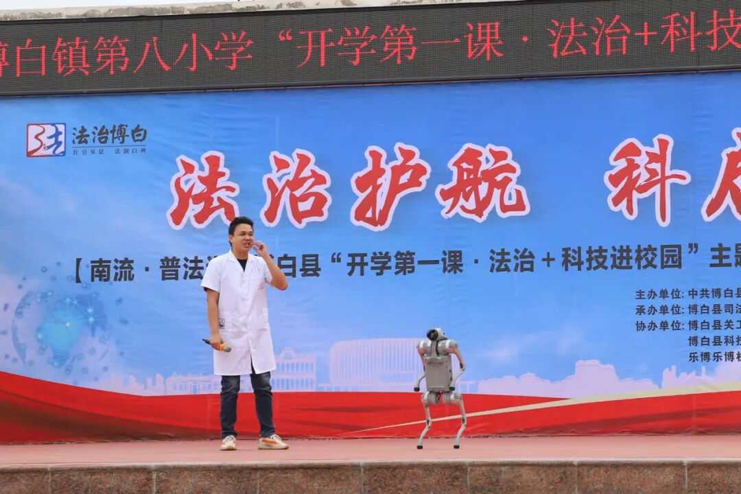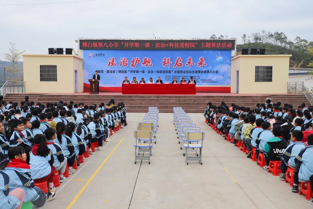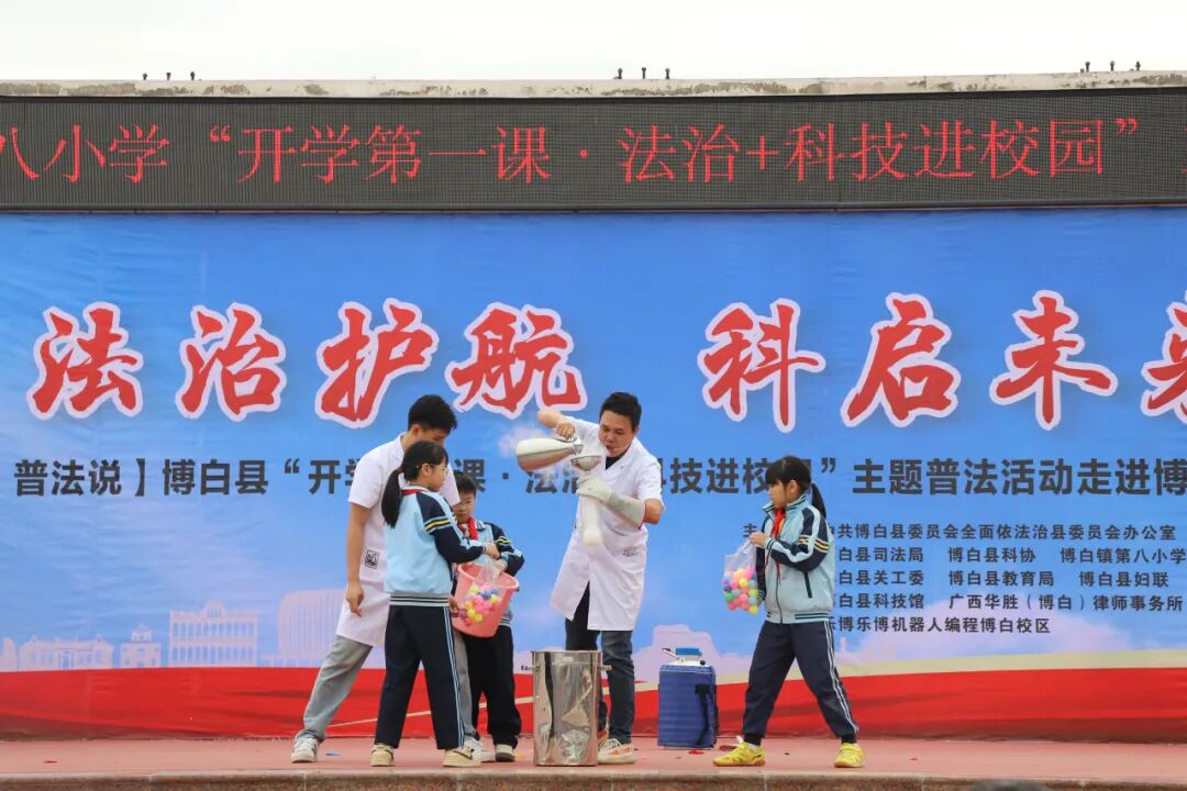 3月11日,在玉林市博白县博白镇第八小学举办了“法治护航 科启未来”法治+科技进校园主题普法活动,活动由县委依法治县办、县司法局、县科协主办,县关工委、县教育局、团县委、县妇联、县科技馆、广西华胜(博白)律师事务所、玉林启元教育科技有限公司、乐博机器人编程博白校区、博白县博白镇第八小学联合承办,为全校师生带来了一场集法治教育与科普体验于一体的沉浸式宣传活动,送上了新学期的“法治+科普”大礼包,注入别样动能。