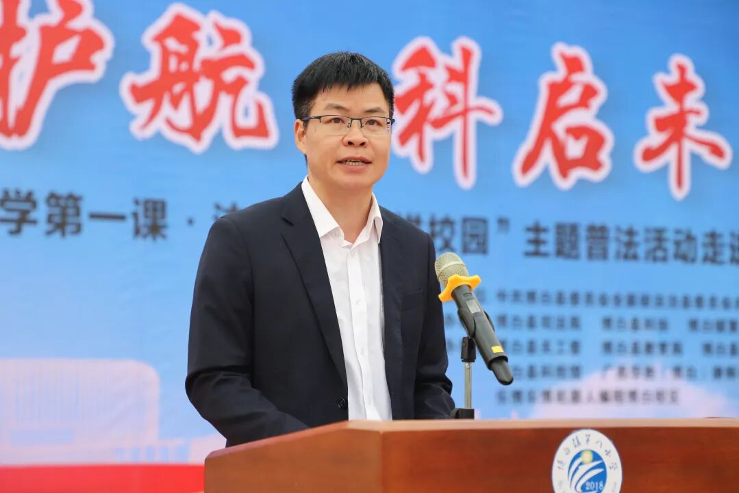 上午8时30分活动正式拉开帷幕。县司法局党组书记、局长李海斌作讲话,他与同学们分享三个关于“法治+科技”的小秘密,表示科学精神与法治意识,犹如鸟之两翼、车之双轮,缺一不可。希望同学们是手握科技利器,心存法律敬畏;眼有星辰大海,行有尺度方圆,恪守法律的底线红线,努力成长为既具备科学素养,又拥有法治精神的新时代好少年!